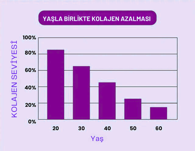 Genç yaşlarda vücudumuz doğal olarak yüksek kolajen seviyelerine sahiptir. Ancak 20’li yaşlardan sonra kolajen üretimi zamanla belirgin şekilde azalmaya başlar.